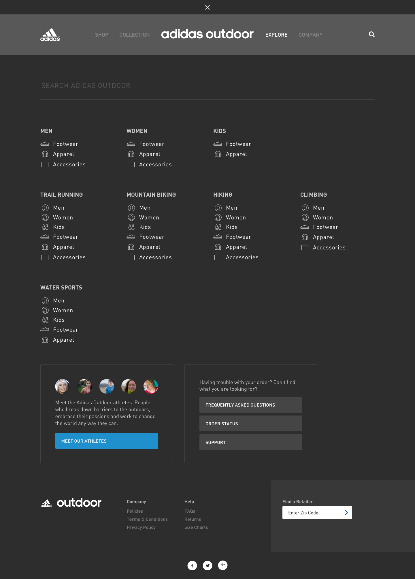 Full redesign of the Adidas Outdoor website from the information architecture to the visual look and feel.